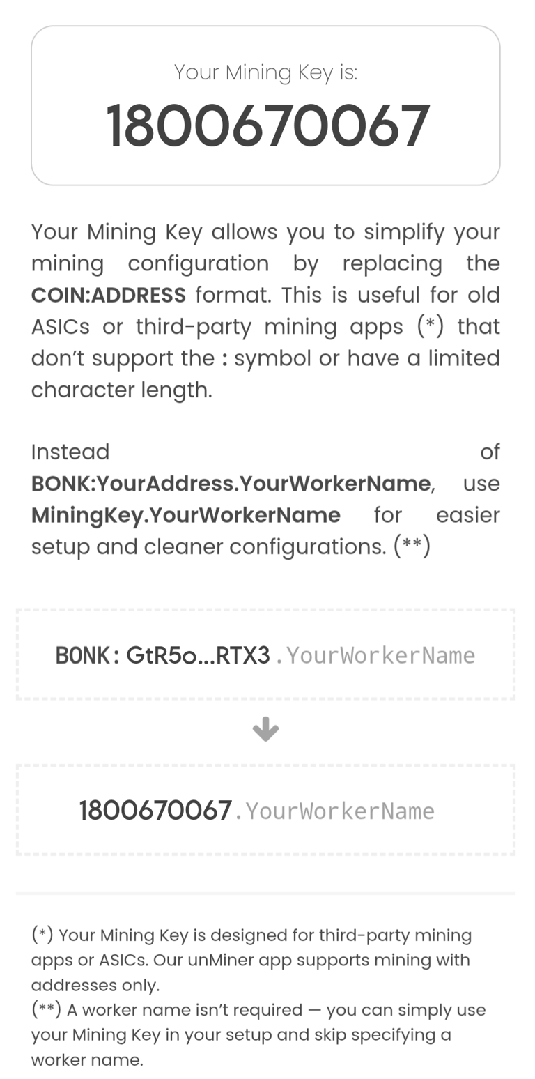 You must input a compatible coin address to receive your mining rewards, then you may use your Unmineable Key.